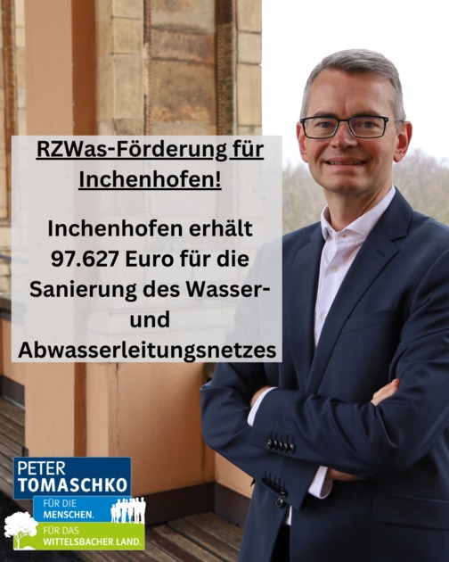 Landtagsabgeordneter Peter Tomaschko ist in das Kuratorium der ARGE Solidarischer Hochwasserschutz berufen worden. In Person von Tomaschko hat das Wittelsbacher Land im Kuratorium nun eine direkte Stimme beim Ausbau der Hochwasserschutzmaßnahmen. ... weiterlesen